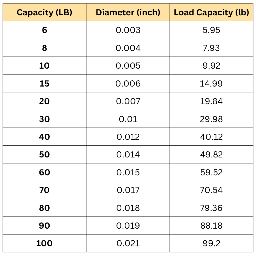 - Line construction: 4-strand multifilament braid