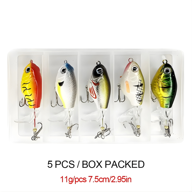 Upgrade your tackle collection with this 5/10PCS Fishing Lure Set Simulation Bait With Metal Hooks. Designed to imitate natural bait movement, these hard fishing lures create lifelike swimming action in the water. The detailed finishes and vibrant color patterns help attract a variety of fish species in freshwater environments.