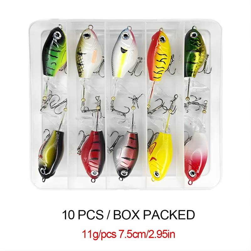 Each lure is equipped with metal treble hooks for defended attachment and reliable catch control. Whether casting from shore or boat, this lure set offers versatility for different fishing styles.