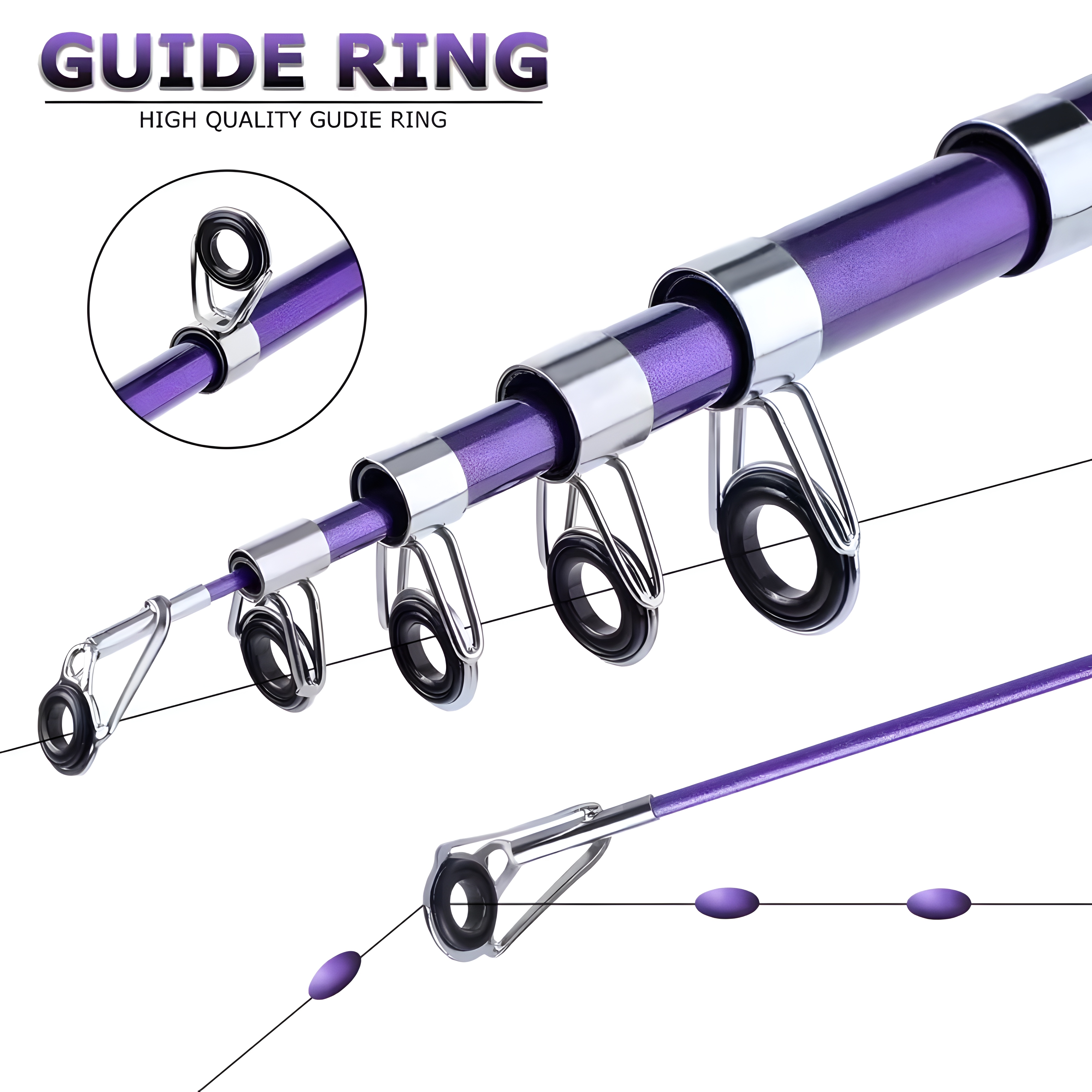 - Rod guide rings for fishing line movement